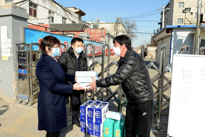 3月13日下午,市国资委党委副书记、副主任晋秋红前往大兴区西红门镇振亚庄村,现场调研北化集团疫情防控和下沉干部工作情况,并向振亚庄村捐赠防护物资和慰问品。北化集团党委副书记吴瑞峰向晋秋红一行介绍了集团公司复工复产情况,并就集团公司承担的七项疫情防控保障任务作了简要介绍,北化集团团委副书记、下沉团队临时党支部书记聂晶汇报了下沉驻村干部工作情况。